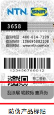 在產品內包裝上僅貼有新防偽標貼,用戶可通過標貼的全息影像技術、微型文字及手機專用APP(NTN Authenti Bear)讀取防偽二維碼進行產品身份查。